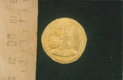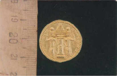 وزن سکه (۸.۲ گرم) نشان میدهد که متعلق به سیستم پولی کوشانی است. چون وزن استاندارد یک دینار طلای کوشانی از نمونه ساسانی آن بیشتر است. وزن یک دینار طلای ساسانی، مطابق سکههای طلای رومی، حدود ۷ گرم است.۷ تصور میکنیم این نوع سکه احتمالا در مرو ضرب میشده است.